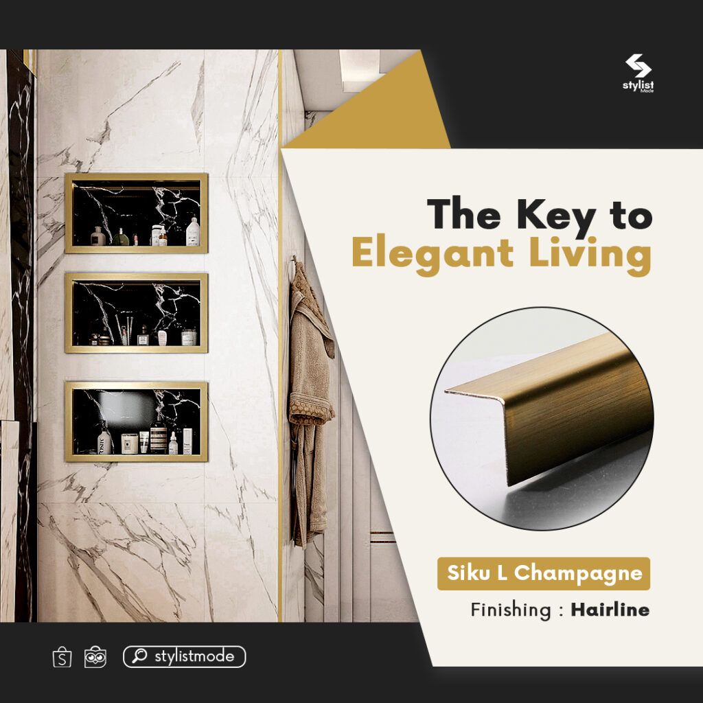 Kami menyediakan tujuh varian warna, mulai dari perak klasik hingga gold champagne, yang bisa Anda padupadankan dengan gaya interior apa pun. Selanjutnya, Anda bisa memilih finishing mirror untuk efek kilau mewah atau hairline untuk aksen tekstur halus. Oleh karena itu, siku L stainless Sikhu mudah menyesuaikan suasana minimalis, industrial, maupun kontemporer.